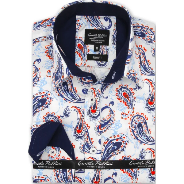 Paisley Blouse Heren. Uniek slim fit blouse wordt gemaakt van een zeer hoogwaardige kwaliteit katoen. Deze heren overhemden hebben een uitstekende afwerking en pasvorm. - Specificaties:- Paisley Blouse Heren- Slim Fit Overhemden - Kleur: Wit- Artikel code: 3096- Seizoen: Voorjaar / Najaar- Mouwen: Lange Mouwen- Patroon: Print - Kwalitatief Hoogwaardige Afwerking- Materiaal: 97% Katoen en 3% Lycra- Weefsel: Dun geweven- Pasvorm: Getailleerd Italiaans- Wasvoorschrift: Machinewas 30 graden, Binnenste buiten wassen (Niet in de droger)- Beschikbare maten: S - M - L - XL - XXL