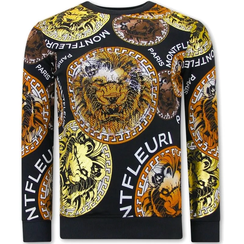 Heren Sweater met Print - Leeuw Head - 3727 - Zwart - Specificaties:- Heren Sweater met Print - Leeuw Head - Artikelcode:3727-Zwart- Kleur: Zwart- Seizoen: Voorjaar / Najaar- Kraag: Ronde Kraag- Mouwen: Lange Mouw- Patroon: Print, Rhinestone- Kwalitatief: Hoogwaardige Afwerking- Materiaal: 84% Katoen en 16% Lycra- Weefsel: Geweven- Pasvorm: Getailleerd Italiaans- Wasvoorschrift: Handwas, Binnenste buiten wassen (Niet in de droger)- Beschikbare maten: S - M - L - XL - XXL