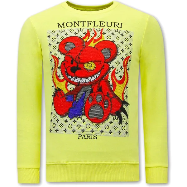 Heren Sweater met Print - Monster Teddy Bear - 3631 - Geel - Specificaties:- Heren Sweater met Print - Monster Teddy Bear - Artikelcode:3631G- Kleur: Geel- Seizoen: Voorjaar / Najaar- Kraag: Ronde Kraag- Mouwen: Lange Mouw- Patroon: Print, Rhinestone- Kwalitatief: Hoogwaardige Afwerking- Materiaal: 84% Katoen en 16% Lycra- Weefsel: Geweven- Pasvorm: Getailleerd Italiaans- Wasvoorschrift: Handwas, Binnenste buiten wassen (Niet in de droger)- Beschikbare maten: S - M - L - XL - XXL