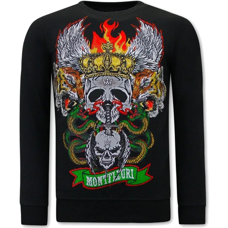 Heren Sweater met Print - Skull Head - 3662 - Zwart - Specificaties:- Heren Sweater met Print - Skull Head - Artikelcode:3662-Zwart- Kleur: Zwart- Seizoen: Voorjaar / Najaar- Kraag: Ronde Kraag- Mouwen: Lange Mouw- Patroon: Print, Rhinestone- Kwalitatief: Hoogwaardige Afwerking- Materiaal: 84% Katoen en 16% Lycra- Weefsel: Geweven- Pasvorm: Getailleerd Italiaans- Wasvoorschrift: Handwas, Binnenste buiten wassen (Niet in de droger)- Beschikbare maten: S - M - L - XL - XXL