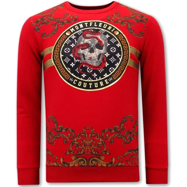 Heren Sweater met Print - Snake Skull - 3674 - Rood - Specificaties:- Heren Sweater met Print - Snake Skull - Artikelcode:3674-Rood- Kleur: Rood- Seizoen: Voorjaar / Najaar- Kraag: Ronde Kraag- Mouwen: Lange Mouw- Patroon: Print, Rhinestone- Kwalitatief: Hoogwaardige Afwerking- Materiaal: 84% Katoen en 16% Lycra- Weefsel: Geweven- Pasvorm: Getailleerd Italiaans- Wasvoorschrift: Handwas, Binnenste buiten wassen (Niet in de droger)- Beschikbare maten: S - M - L - XL - XXL