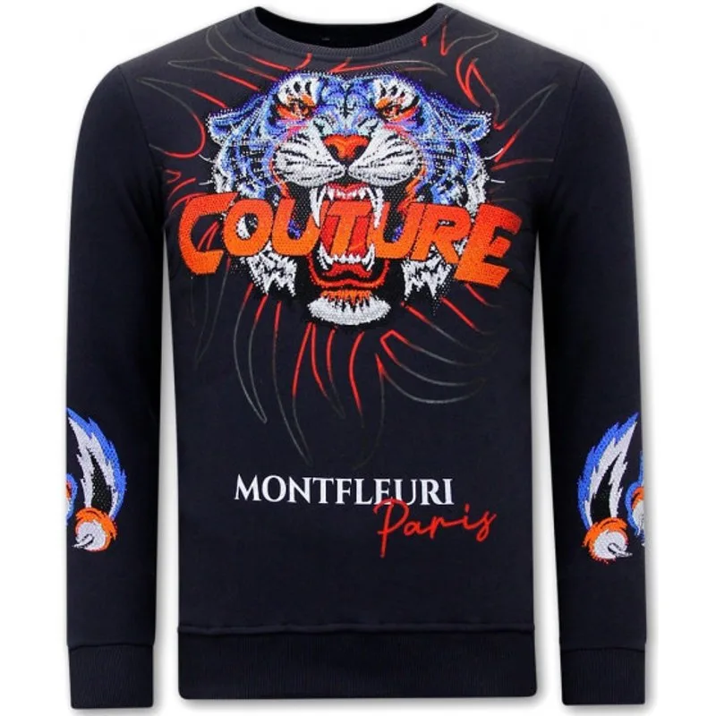 Heren Sweater met Print - Tiger Couture - 3717 - Blauw - Specificaties:- Heren Sweater met Print - Tiger Couture- Artikelcode:3717-Blauw- Kleur: Blauw- Seizoen: Voorjaar / Najaar- Kraag: Ronde Kraag- Mouwen: Lange Mouw- Patroon: Print, Rhinestone- Kwalitatief: Hoogwaardige Afwerking- Materiaal: 84% Katoen en 16% Lycra- Weefsel: Geweven- Pasvorm: Getailleerd Italiaans- Wasvoorschrift: Handwas, Binnenste buiten wassen (Niet in de droger)- Beschikbare maten: S - M - L - XL - XXL