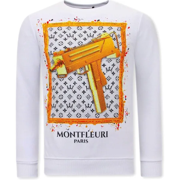 Heren Sweater met Print - Uzi does it - 3673 - WIt - Specificaties:- Heren Sweater met Print - Uzi does it - Artikelcode:3673-Wit- Kleur: Wit- Seizoen: Voorjaar / Najaar- Kraag: Ronde Kraag- Mouwen: Lange Mouw- Patroon: Print, Rhinestone- Kwalitatief: Hoogwaardige Afwerking- Materiaal: 84% Katoen en 16% Lycra- Weefsel: Geweven- Pasvorm: Getailleerd Italiaans- Wasvoorschrift: Handwas, Binnenste buiten wassen (Niet in de droger)- Beschikbare maten: S - M - L - XL - XXL