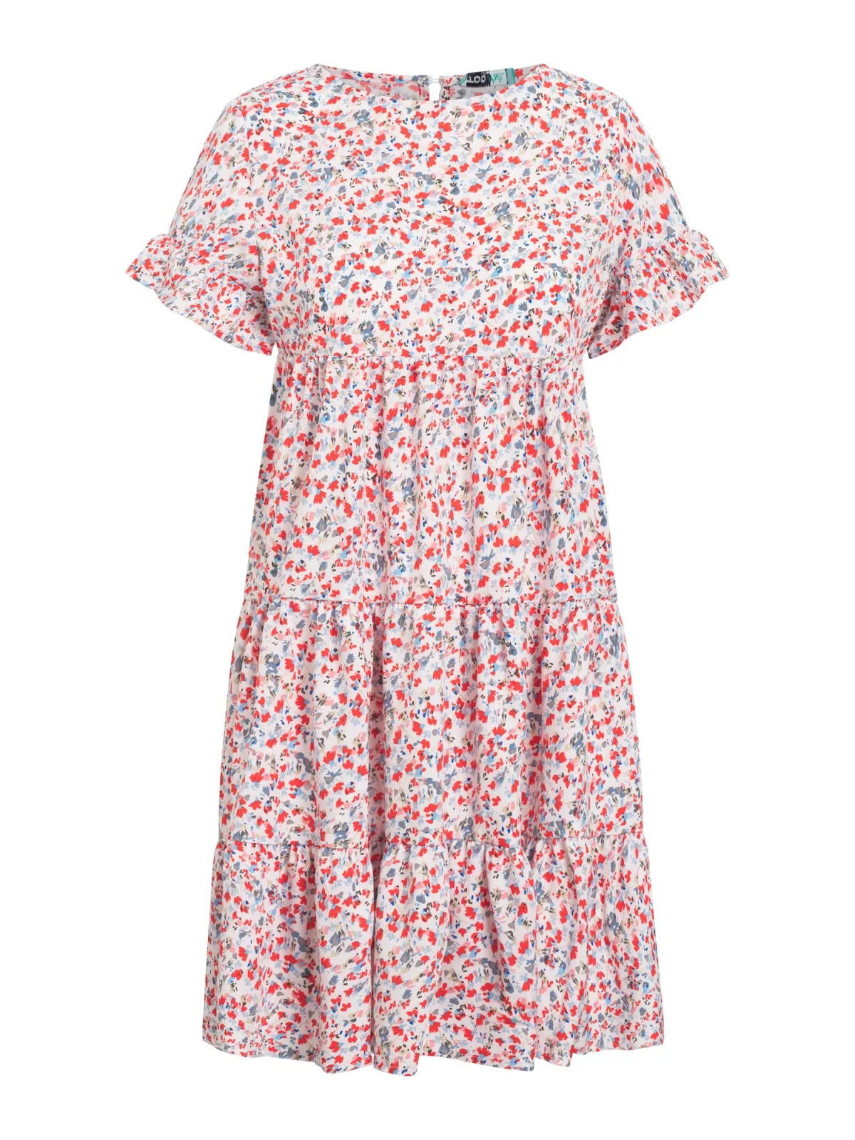 Specificaties: TOOche Zomerjurk ‘Crazy’ azuur / grijs / rood / wit