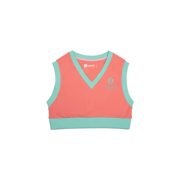 Mouwloze top Schitterend. V-hals. Merkborduursel op de voorkant. Contrasterende geribde afwerking. Naden in toon zichtbaar. Samenstelling: 96% Katoen, 4% Elastaan. Onderhoud: - Wassen op max. 40ºC. - Geen bleekmiddel gebruiken. - Strijken op lage temperatuur. - Niet chemisch reinigen. - Geen droger gebruiken.