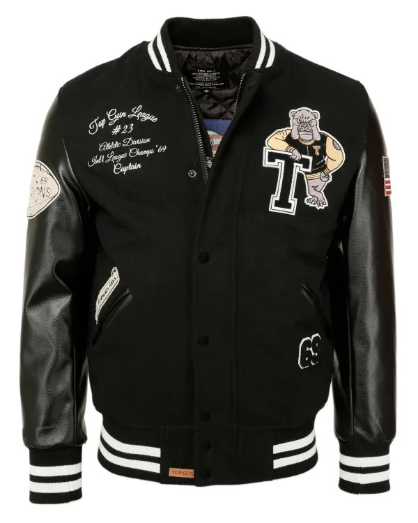 De opgenaaide patches met de typische Top Gun motieven geven het jack extra expressiviteit voor een casual look - met een mooie afbeelding aan de binnenkant en elastisch breisel aan de manchetten, tailleband en kraag. Het sportieve jack met mouwen in lederlook heeft twee steekzakken en een groot motief op de achterkant.