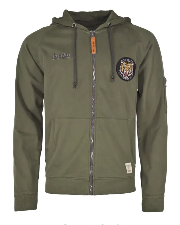 De unieke Top Gun-stijl komt terug in deze moderne hoodie. Hij is voorzien van twee patches op de borst met het Top Gun-logo en de tijgerkop. De hoodie heeft een capuchon met een trekkoord en een ritssluiting, terwijl de tailleband aan de onderkant zorgt voor een ideale pasvorm.