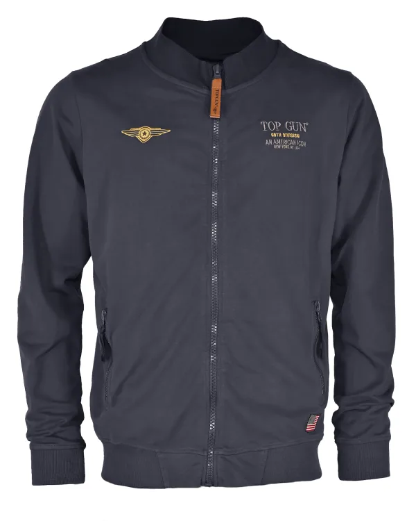 Leichte Top Gun Jacke für die Übergangszeit mit Top Gun Schriftzug auf der Brust. Das Highlight ist der Top Gun Tigerkopf als Print auf der Rückseite der Jacke. Zwei komfortable Seitentaschen mit Zipper sowie zwei Schulterklappen machen diese Jacke zu einem absoluten Muss. Der Strickbund an den Ärmleabschlüssen und dem Saum sorgen für eine ideale Passform.