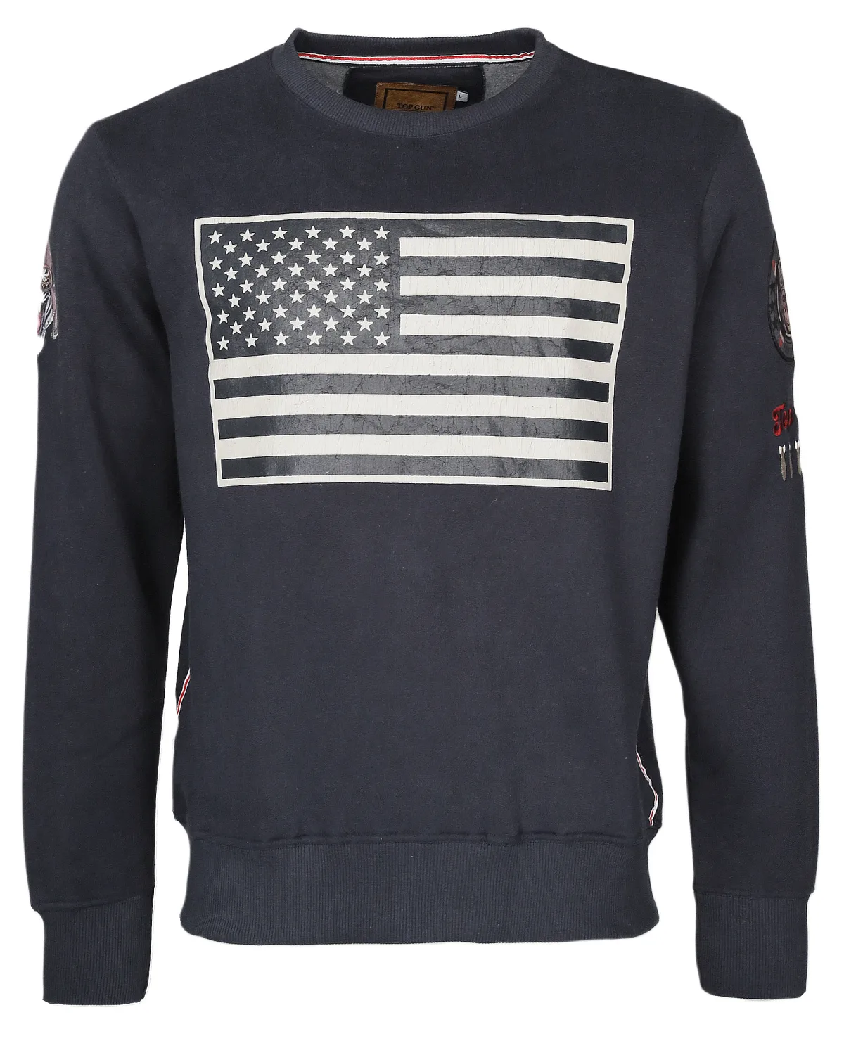 De unieke Top Gun-stijl komt terug in deze moderne trui. Hij is zacht gevoerd en heeft de typische patches op de bovenarmen. Het elastische breisel bij de manchetten en tailleband zorgt voor een ideale pasvorm. De gescheurde Amerikaanse vlag op de borst maakt het een echte blikvanger voor de koudere maanden van het jaar. De zachte ronde halslijn zorgt voor een comfortabele pasvorm.