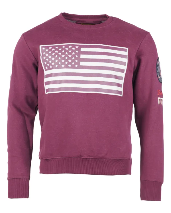 De unieke Top Gun-stijl komt terug in deze moderne trui. Hij is zacht gevoerd en heeft de typische patches op de bovenarmen. Het elastische breisel bij de manchetten en tailleband zorgt voor een ideale pasvorm. De gescheurde Amerikaanse vlag op de borst maakt het een echte blikvanger voor de koudere maanden van het jaar. De zachte ronde halslijn zorgt voor een comfortabele pasvorm.