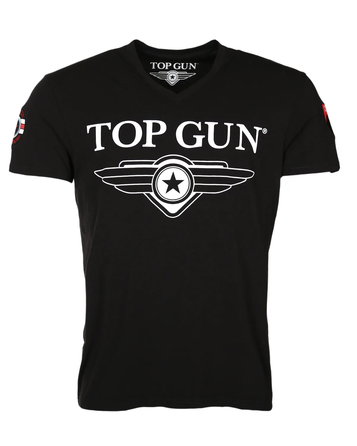 Het shirt heeft een comfortabele V-hals. De sportieve snit maakt het zeer comfortabel om te dragen. Het heeft het typische borduursel op beide armen met Top Gun letters in het rechter embleem.