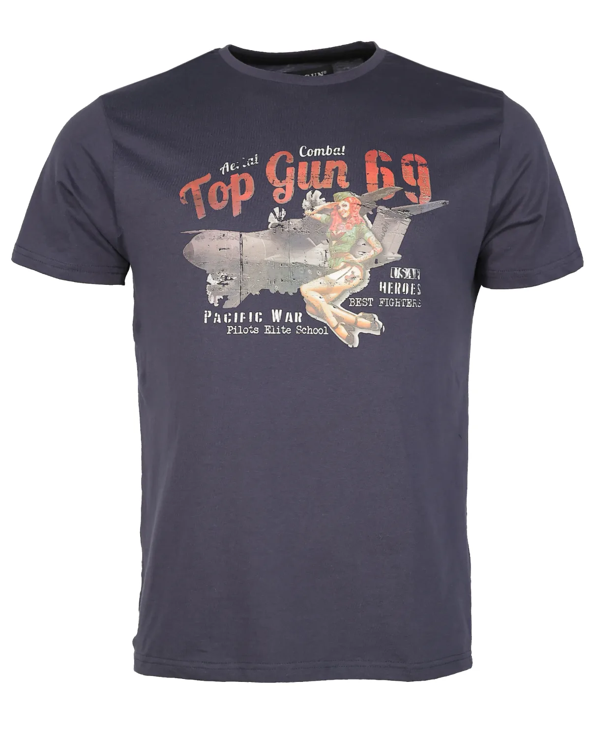 Het shirt heeft een prachtige Top Gun Top Gun print. Met deze unieke print in US pilot stijl en de comfortabele snit is dit shirt een echte "must have".