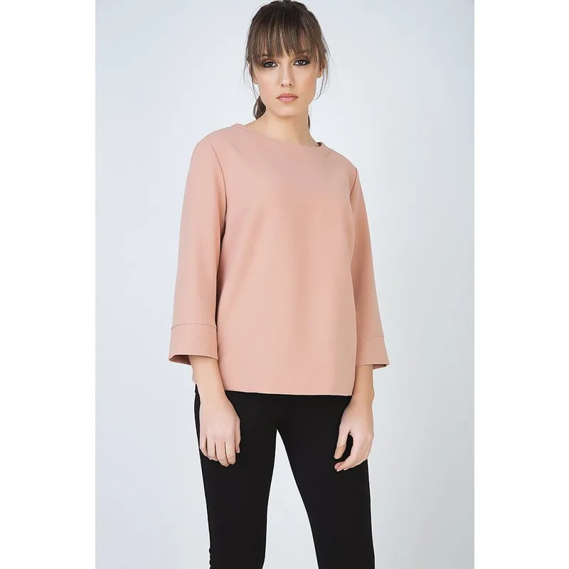 Top van geweven stof met een lichte stretch. ¾ mouwen en een boothals. Sluit op de rug met een ton-sur-ton ritssluiting. Losse pasvorm. Lichaamslengte voor maat 38: 58cm.Ons model heeft lengte 178 cm en draagt maat 36. Afmetingen voor maat 38 (in cm):Schouderbreedte-38; Buste-50; Taille-54; Zoomlijn-56; Mouwen-46; Lichaamslengte-61. Kledingstuk is loose fit.