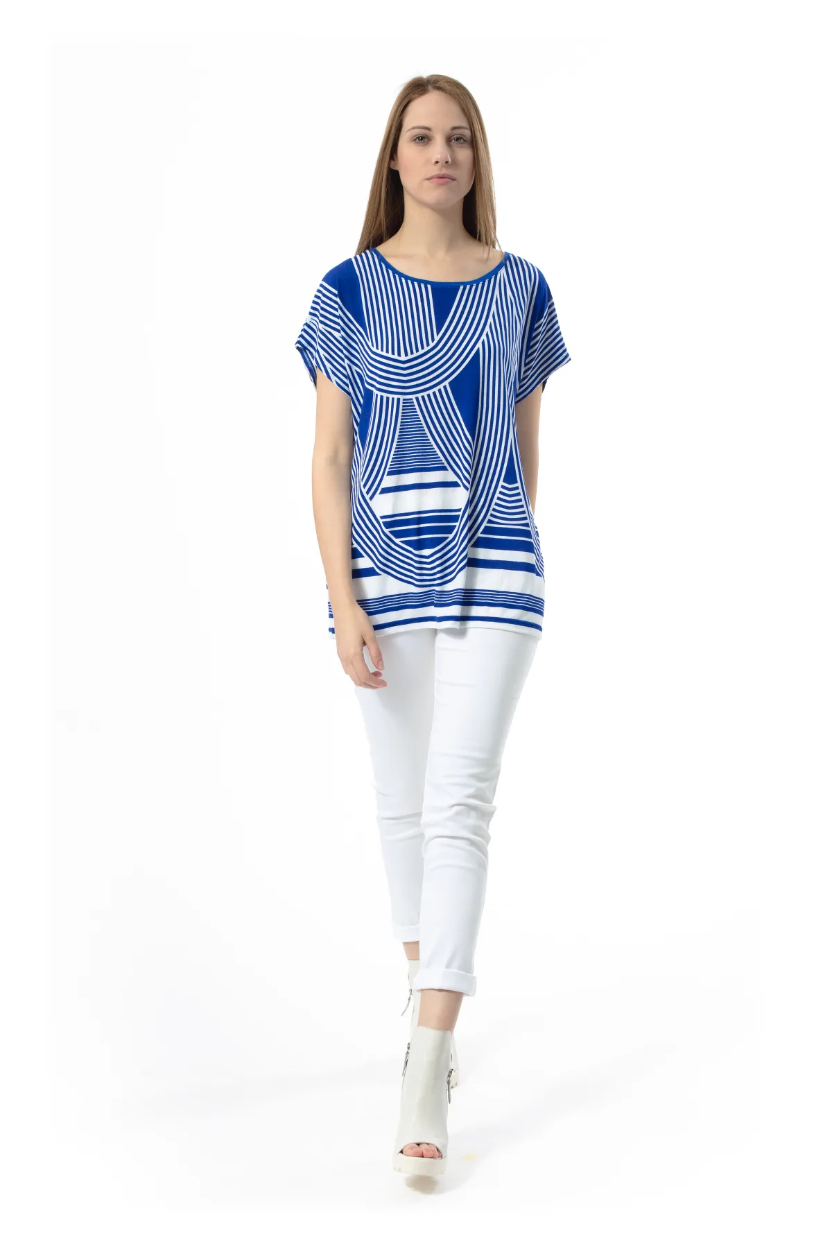 Vul je ensembles dit seizoen met unieke stukken en schuif aan in deze weelderige top van Conquista. Versierd met een zachte en zwierige optische print en gemaakt in een moeiteloos silhouet, zal deze veelzijdige top je signature piece worden op die off-duty dagen! Het getoonde model is 178 cm en draagt maat 36/S. Top CONQUISTA in geprinte stof, ronde halslijn met effen bies, korte mouwen en vierkant silhouet.