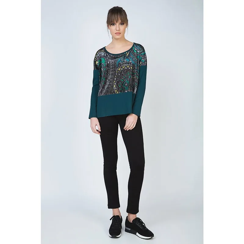 Top met lange mouwen en print van Conquista Fashion in stretch jersey. Ons model is 176 cm en draagt maat 36/S. Gemaakt in Griekenland.