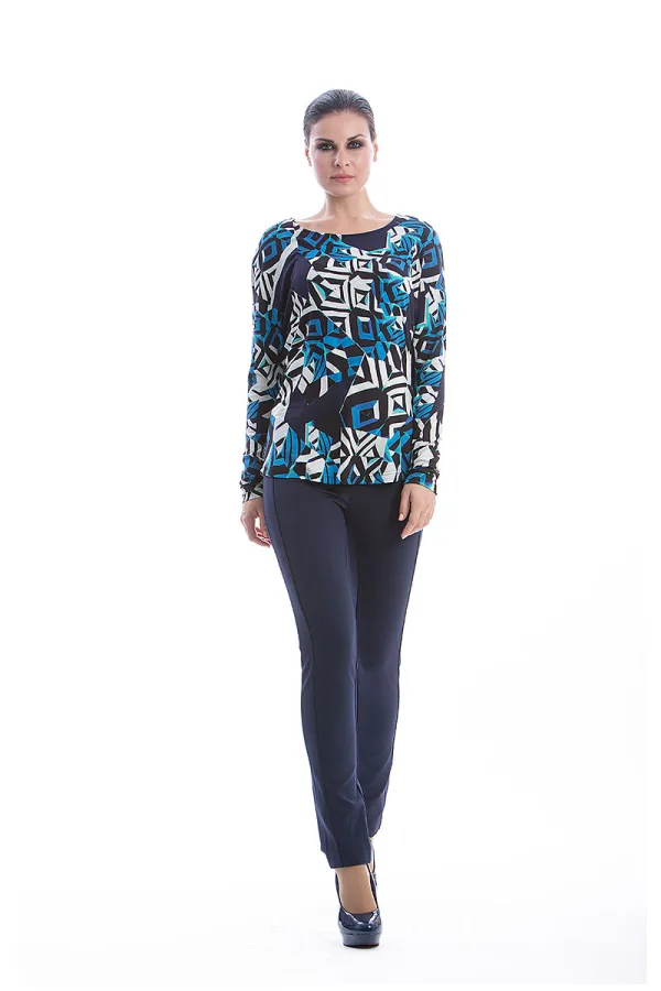 Top CONQUISTA in printstof, lange mouwen, wijd bij de schouders voor een subtiele vleermuismouw-silhouet, ronde hals. Afgeronde zoom met een lengte van 64 cm voor maat 36/S. Het model is 1.77 m lang en draagt maat 36/S. 92% viscose-8% elastaan.