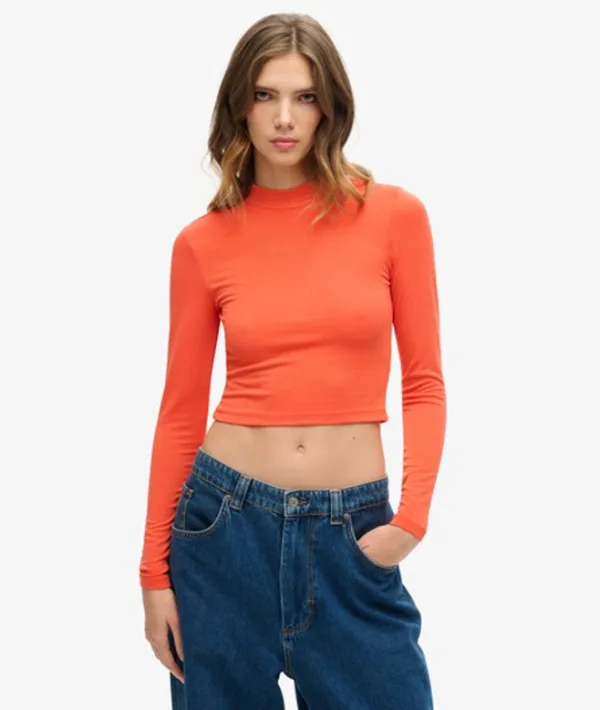 De jersey top met open achterkant en lange mouwen is een essentieel kledingstuk dat niet mag ontbreken in je garderobe. Je zult je afvragen hoe je ooit zonder hebt gekund. Het ontwerp met hoge hals flatteert en stelt je in staat om met gemak laagjes te dragen, terwijl het ontwerp met open achterkant iets extra's toevoegt aan een verfijnde outfit. Slimfit - de nauw aansluitende pasvorm zorgt voor een getailleerd silhouet Hoge halslijn Lange mouwen Ontwerp met open achterkant Subtiel Superdry-logo