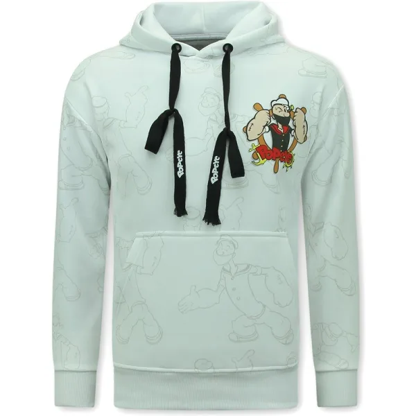 Hoodie Heren met Capuchon - Popeye - Wit - Specificaties:- Hoodie Heren met Capuchon - Popeye - Mouwen: Lange Mouw- Patroon: Print- Materiaal: 80% Katoen en 20% Polyester- Weefsel: Dik Geweven- Pasvorm: Oversized- Wasvoorschrift: Handwas, Binnenste buiten wassen (Niet in de droger)- Beschikbare maten: M - L - XL - XXL