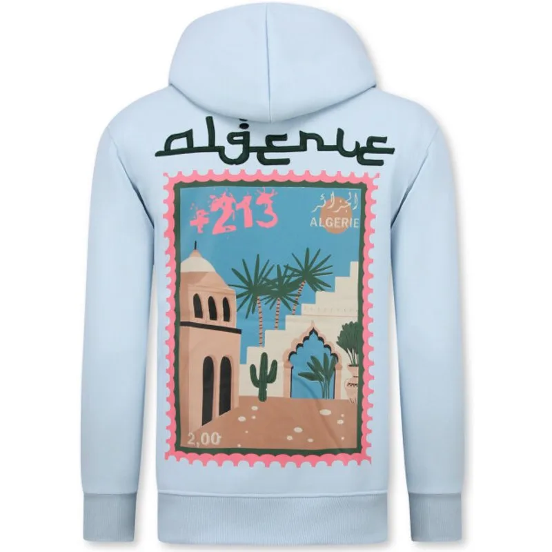 Oversized Hoodie Heren met Capuchon - Algerie Print - Dik Geweven - 5816- Licht Blauw - Specificaties:- Oversized Hoodie Heren met Capuchon - Mouwen: Lange Mouw- Patroon: Print- Materiaal: 80% Katoen en 20% Polyester- Weefsel: Dik Geweven- Pasvorm: Oversized- Wasvoorschrift: Handwas, Binnenste buiten wassen (Niet in de droger)- Beschikbare maten: M - L - XL - XXL