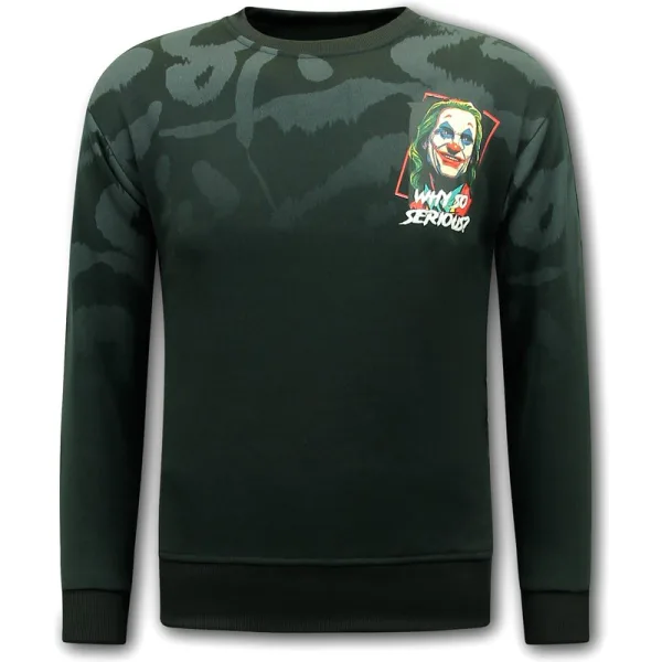 Truien Heren Volwassenen - Heren Sweater Joker - Zwart - Specificaties:- Truien Heren Volwassenen - Heren Sweater Joker - Mouwen: Lange Mouw- Patroon: Print- Materiaal: 20% Katoen en 80% Polyester- Weefsel: Dik Geweven- Pasvorm: Oversized- Wasvoorschrift: Handwas, Binnenste buiten wassen (Niet in de droger)- Beschikbare maten: M - L - XL - XXL