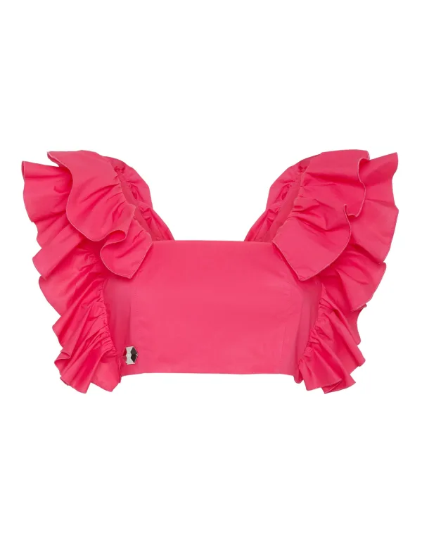 Verander je look en kies deze op romantiek geïnspireerde crop top. Bekijk de details. Katoenen popeline Gekrulde bandjes kruisen elkaar aan het einde van de V-open rug Ceintuur met strikband Badge met logo op de rechterzijde