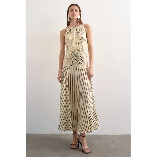 TOPSHOP gestreepte gebloemde maxi jurk ecru