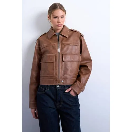TOPSHOP imitatieleren jasje bruin