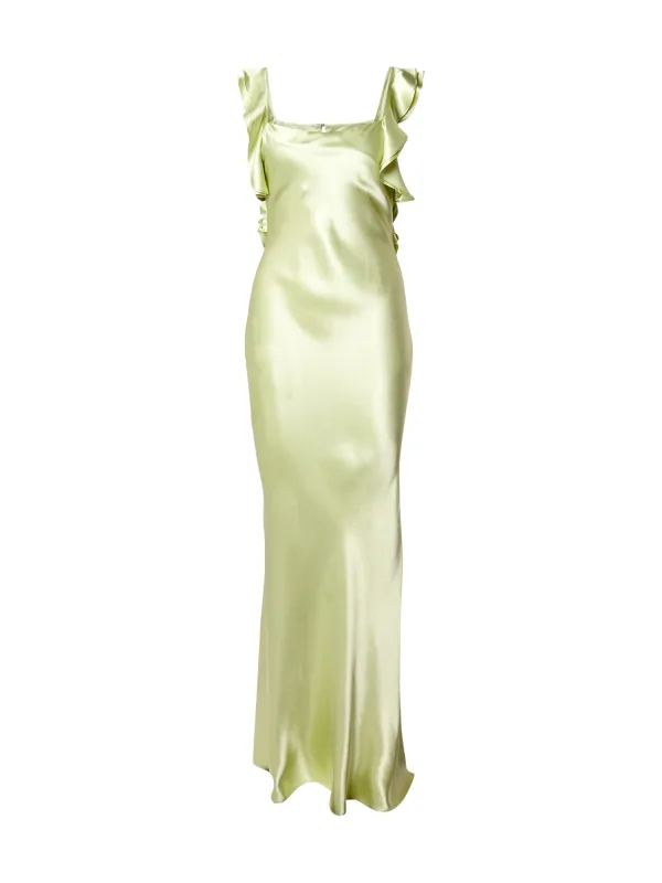 Design: Gevoerde zoom/rand; Type sluiting: Knoopsluiting; Materiaal: Satijn; Halstype: Watervalhals; Motief: Effen; Soort bandjes: Brede bandjes; Details: Cut-outs, Volant, Gedrapeerd; Extra's: Op staal naden, Gladde stof, Buigzame grip; Lengte: Lang/maxi; Snit: Getailleerd; Pasvorm: Normale pasvorm; Armlengte: Mouwloos