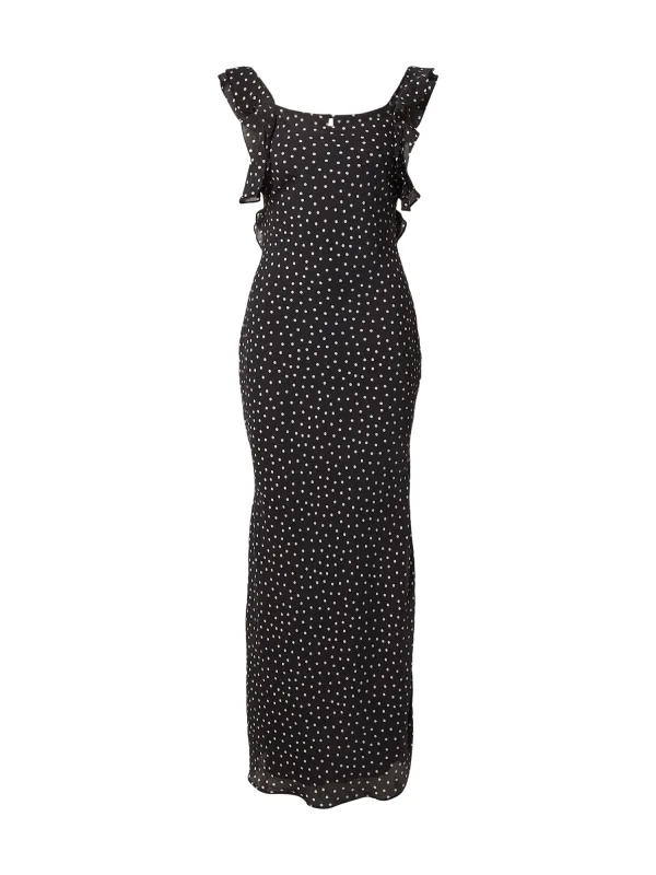 Design: Zijdelingse inkepingen; Type sluiting: Knoopsluiting; Materiaal: Viscose; Motief: Gestippeld; Soort bandjes: Brede bandjes; Details: Cut-outs, Volant; Extra's: All-over patroon, Lichte stof; Lengte: Lang/maxi; Snit: Figuur omarmend; Pasvorm: Slanke pasvorm; Armlengte: Mouwloos