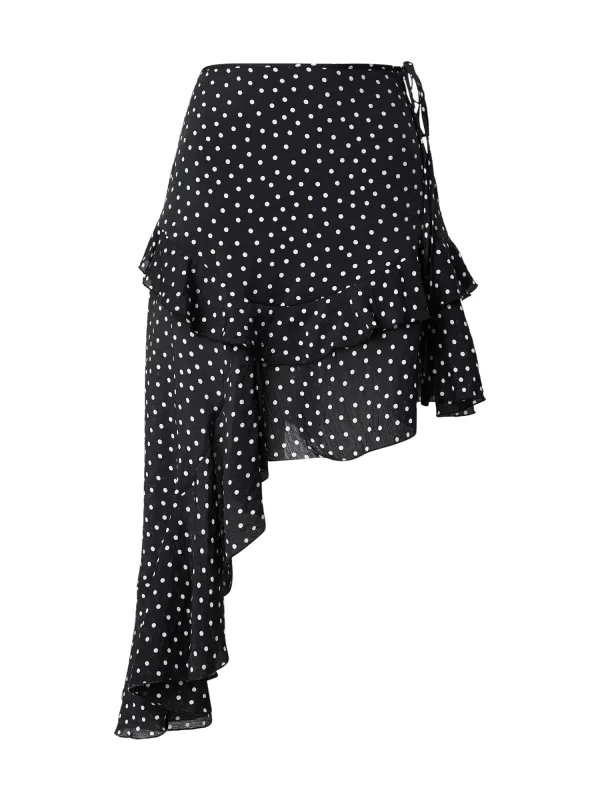 Design: Asymmetrische zoom, Om te knopen/binden; Materiaal: Viscose; Motief: Gestippeld; Details: Volant, Gedrapeerd; Extra's: All-over patroon, Gladde stof; Lengte: Kort/mini; Pasvorm: Normale pasvorm
