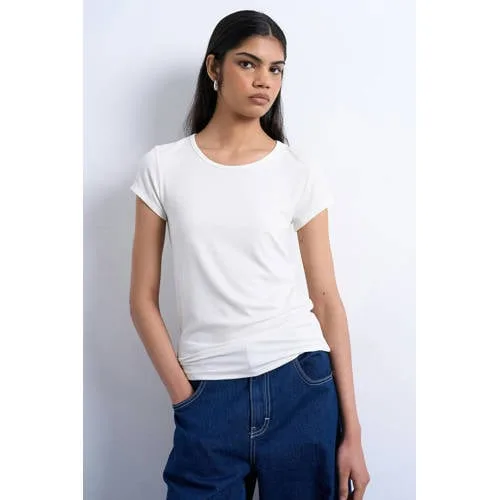 Voor een moderne basis die je elke dag weer uit de kast pakt, is dit TOPSHOP T-shirt met korte mouw een praktische keuze. De regular fit, ronde hals en effen kleur maken het T-shirt makkelijk te combineren, van je favoriete jeans tot een nette pantalon. Door de combinatie van viscose en elastaan voelt de stof soepel aan en sluit het shirt mooi aan zonder strak te zitten.Details die je elke dag draagt Regular fit voor een ontspannen, vrouwelijke pasvorm Korte, rechte mouwen voor een tijdloze uitstraling Ronde hals die mooi langs de halslijn valt Gemaakt van 95% viscose en 5% elastaan voor een soepele stof met lichte stretch Effen uitvoering, gemakkelijk te combineren met verschillende stijlen Zonder zakken voor een rustige, cleane look Valt normaal volgens het maatadvies, waardoor je meestal je gebruikelijke maat kunt aanhoudenVeelzijdig T-shirt voor elke dagDit TOPSHOP T-shirt past net zo goed bij een relaxte dag thuis als bij een kantooroutfit. Draag het los over een jeans of rok, of stop het deels in de taille voor een iets gekleder effect. De effen kleur vormt een rustige basis onder een blazer, vest of leren jasje.TOPSHOP: eigentijdse modeTOPSHOP staat bekend om modieuze items met een toegankelijke uitstraling. Het merk speelt in op trends, maar houdt de pasvorm en het draaggemak altijd centraal. Zo voeg je makkelijk nieuwe favorieten toe aan je garderobe die je vaak en met plezier draagt.Een comfortabele basic die je garderobe rustig en tegelijk helemaal van nu houdt.
