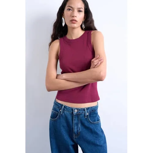Design: Gevoerde zoom/rand, Geribbelde kraag; Materiaal: Jersey; Halstype: Ronde hals; Motief: Effen; Soort bandjes: Brede bandjes; Extra's: Op staal naden, Voelt zacht aan; Pasvorm: Slanke pasvorm; Armlengte: Mouwloos; Lengte: Korte pasvorm