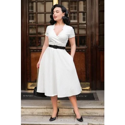 Topvintage exclusive ~ Chiara Pinstripe swing jurk in wit