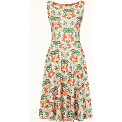 Topvintage exclusive ~ Cindi Flower Tiger swing jurk in gebroken wit Prijzen