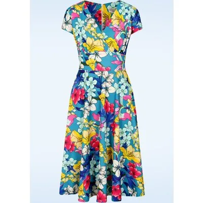 Topvintage exclusive ~ Esmeralda Lily swing jurk in blauw