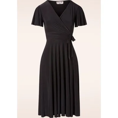 Topvintage exclusive ~ Irene overslag swing jurk in zwart Prijzen