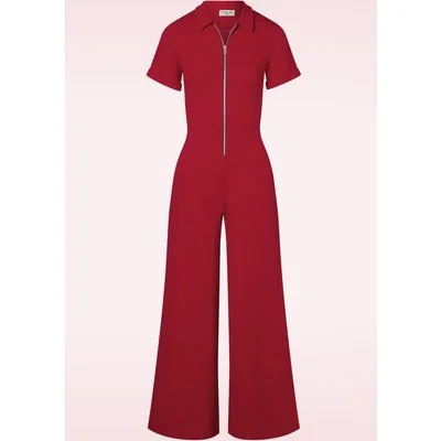 Topvintage exclusive ~ Izzy Short Sleeve jumpsuit in rood