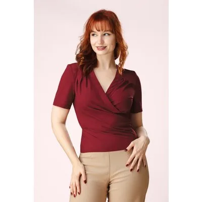Topvintage exclusive ~ Mila wikkeltop in bordeauxrood Prijzen