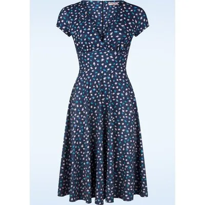 Topvintage exclusive ~ Miley Ditsy swing jurk in navy Prijzen