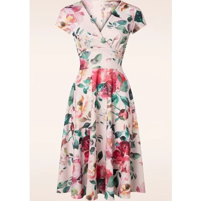 Topvintage exclusive ~ Miley Flower swing jurk in dusty roze en multi Prijzen