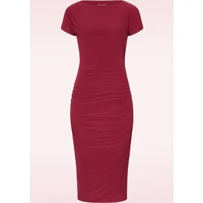 Topvintage exclusive ~ Ruby Curve Crush slinky pencil jurk in rood