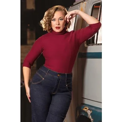 “Your new power colour, with a perfect fit to match.” Met deze Sandra top creëer je eindeloos veel prachtige outfits. Uitgevoerd in een iets dikkere, maar soepele en stretchy, donkerrode viscosemix die niet aftekent en heerlijk draagt. * Licht getailleerd * Omslag col * 3/4 mouwtjes * Blinde ritssluiting achterzijde * Lang genoeg om op een mid-waist broek of rok te dragen * Gorgeous Sam is 1,70 m * Exclusief bij Topvintage verkrijgbaar