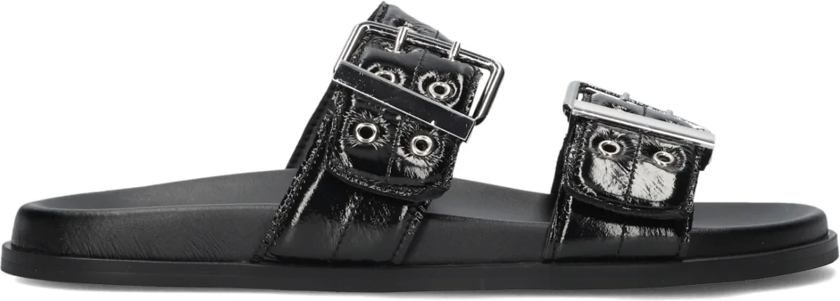 Ontdek de ARES slippers van TORAL, perfect voor de zonnige dagen. Met een elegante ronde neus en een stijlvolle gesp sluiting, stap je moeiteloos in comfort dankzij de leren binnenkant. De buitenkant van glanzend lakleer geeft een chique touch aan je outfit. De rubberen zool zorgt voor grip tijdens een ontspannen wandeling langs het strand of een gezellige barbecue in de tuin. Combineer deze zwarte slippers met een luchtige zomerjurk of een trendy korte broek voor een moeiteloze look. Geniet van de lente en zomer in stijl met deze veelzijdige slippers.