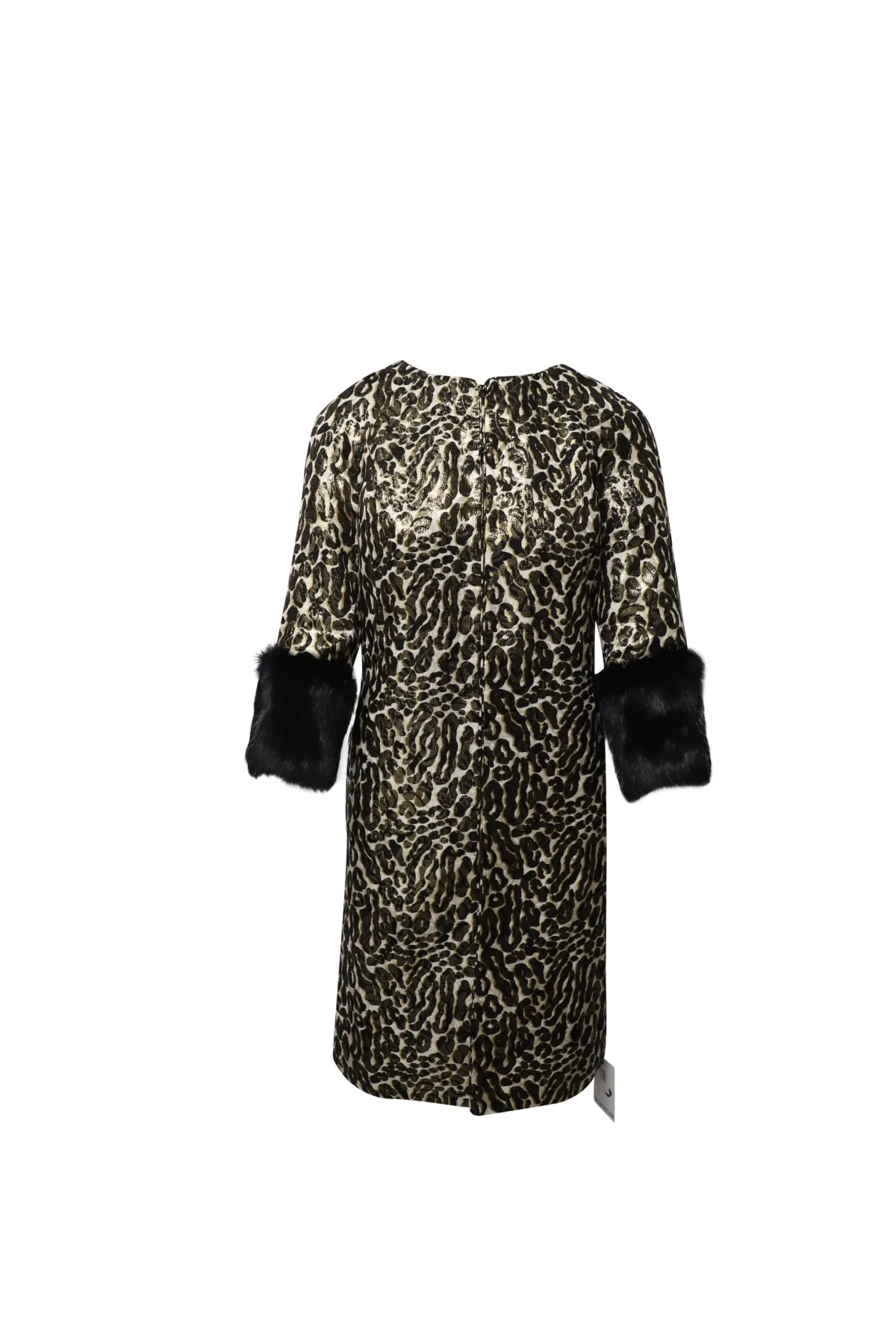 | Prijsgeschiedenis voor Tory Burch Dierlijke Print Jacquard Jas met Bontmouwen in Multicolor Zijde | |