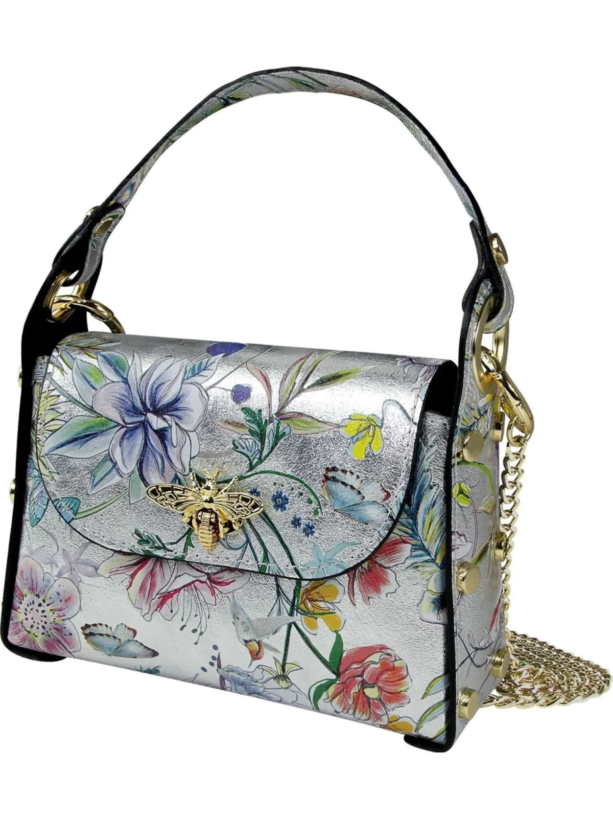 Type sluiting: Drukknoop; Materiaal: Leer; Motief: Bloemenprint; Materiaal: Glad leer; Hengsellengte: Lange schouderriemen