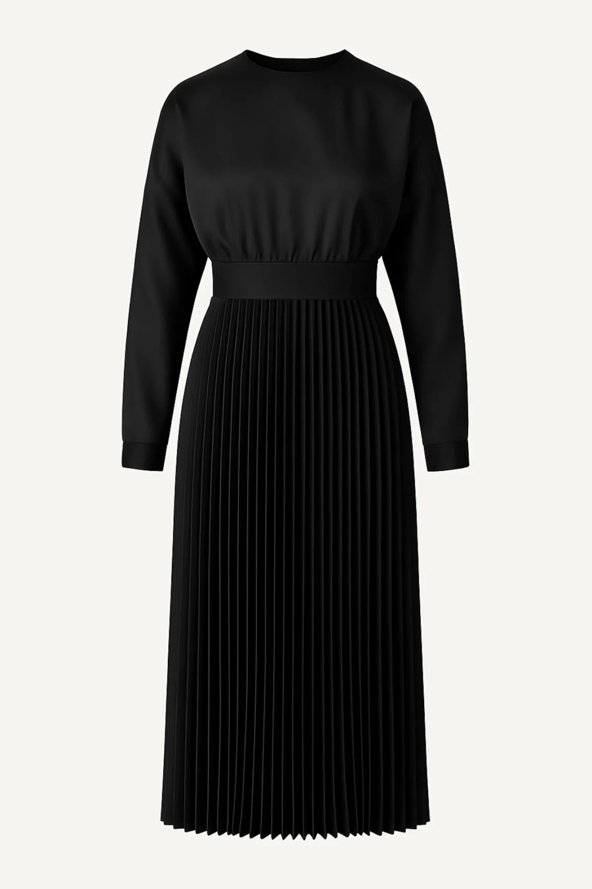 Design: Tailleband; Materiaal: Satijn; Halstype: Ronde hals; Motief: Effen; Details: Gedrapeerd, Plissé; Lengte: 7/8 lengte; Snit: Getailleerd; Pasvorm: Normale pasvorm; Armlengte: Lange mouw