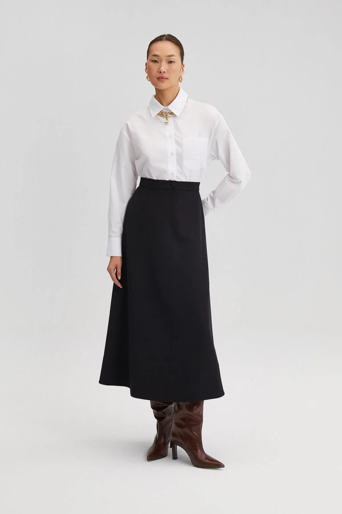 Design: Gevoerde zoom/rand, A-lijn; Motief: Effen; Rokvorm: A-lijn rok; Extra's: Op staal naden; Lengte: 7/8 lengte; Pasvorm: Normale pasvorm