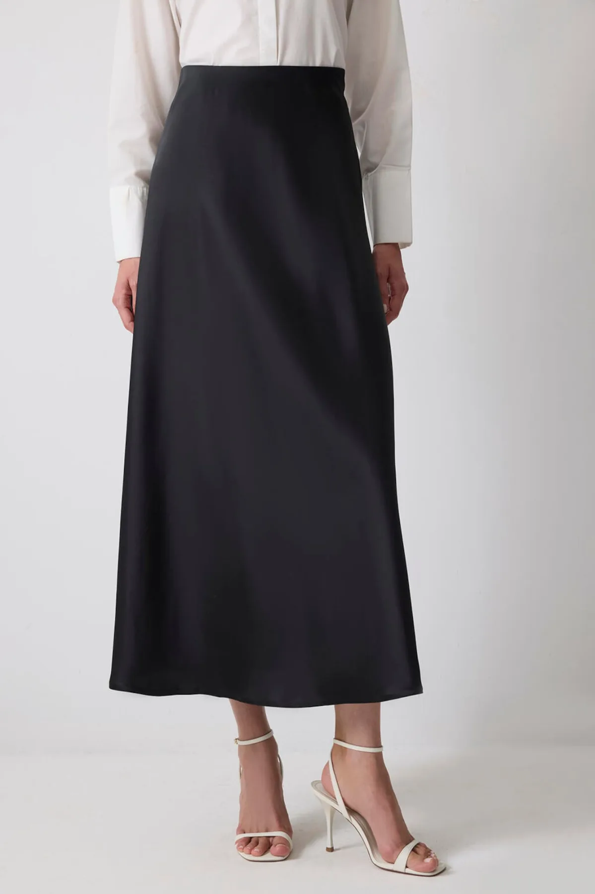 Design: Gevoerde zoom/rand, Rechte zoom; Materiaal: Satijn; Motief: Effen; Rokvorm: A-lijn rok; Extra's: Op staal naden, Lichte stof; Lengte: 7/8 lengte; Pasvorm: Normale pasvorm