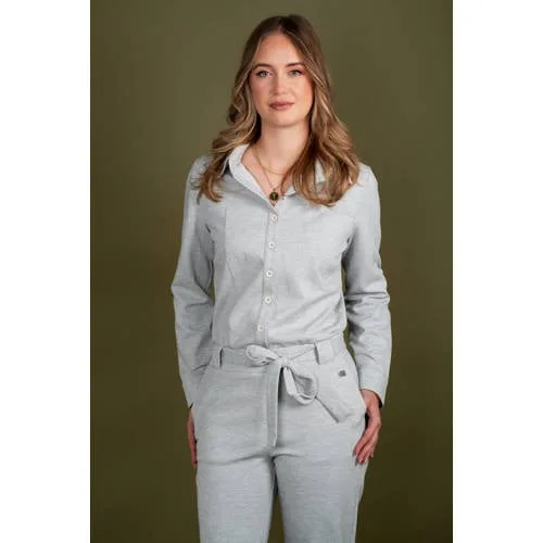 Kies voor een verzorgde look met deze grijze dames jumpsuit van TQ-Amsterdam. De 'Mara LS Rap' combineert een nette uitstraling met het gemak van één compleet pak. De soepele stof met stretch volgt je bewegingen soepel en de tijdloze grijze kleur maakt dit een praktische basis voor zowel werk als vrije tijd in het voorjaar.Verfijnde details en comfortabele pasvorm Klassieke kraag en knoopsluiting aan de voorzijde voor een nette, verzorgde look Lange, rechte mouwen die prettig vallen en veel bewegingsvrijheid geven Effen grijze kleur die makkelijk te combineren is met verschillende schoenen en accessoires Zijzakken voor praktisch gemak, zonder afbreuk te doen aan het slanke silhouet Elastische stretch in de stof voor een comfortabele pasvorm die mooi aansluit Geschikt voor standaardmaten binnen de Feminine collectieJumpsuit voor elke dag van de lenteDeze jumpsuit is gemaakt voor dagen waarop je er verzorgd uit wilt zien zonder lang na te denken over combinaties. Met loafers krijgt de look een zakelijke uitstraling, met sneakers ontstaat een meer ontspannen outfit. Geschikt voor kantoor, een etentje of een dag in de stad.TQ-Amsterdam: moderne stijl met een Nederlandse signatuurTQ-Amsterdam ontwerpt eigentijdse mode met aandacht voor draaggemak en een vrouwelijke pasvorm. De collecties sluiten aan op het dagelijkse leven in en om de stad, met items die je makkelijk combineert en vaak uit de kast pakt. Zo voeg je met deze jumpsuit een veelzijdig basisstuk toe aan je garderobe.Een praktische keuze voor dagen waarop je in één keer klaar wilt zijn, van ochtend tot avond.
