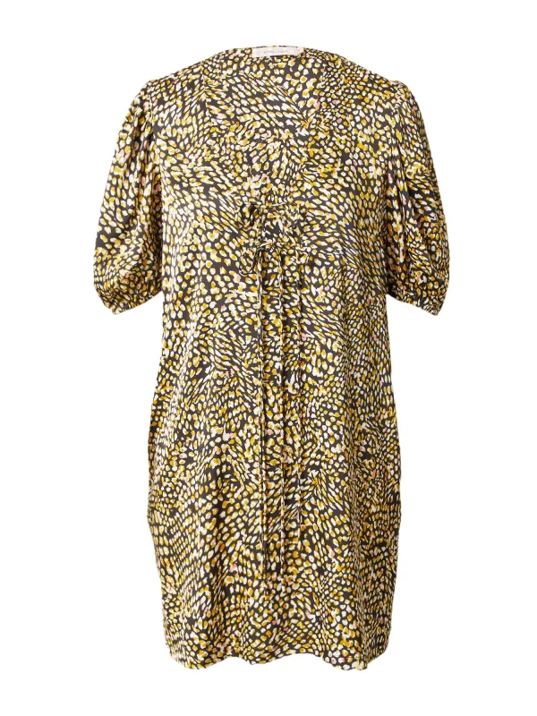 Traffic People Jurk ‘Blair’ mosterd / zwart / wit